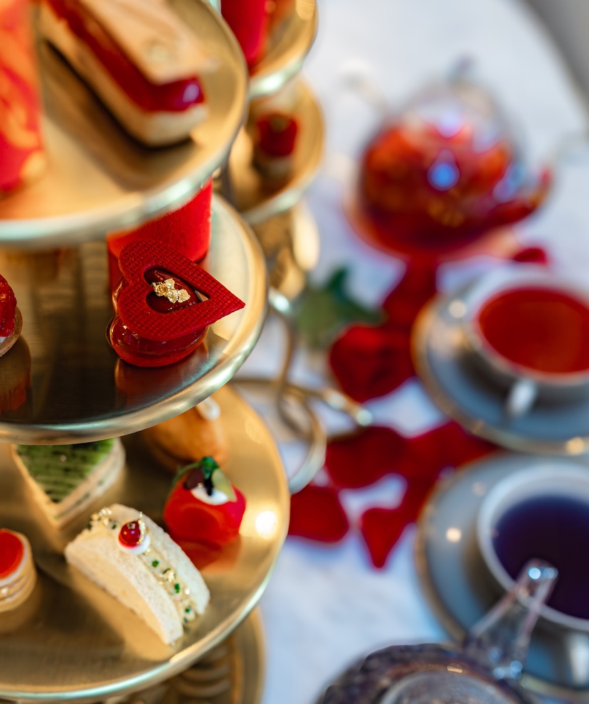 Couples are invited to linger over an elegant Valentine’s Afternoon Tea Brunch, where a curated selection of savory bites and exquisite sweet creations is served alongside premium tea blends and signature coffees. The experience is elevated by live performances from a pianist and violinist, whose soft melodies create an ambiance that feels both intimate and timeless.