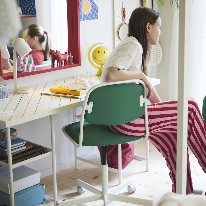 Even the youngest learners benefit from a designated spot for their activities. A combo of a PÅHL desk and a LOBERGET/SIBBEN chair grows with your child and gives them a sense of ownership over their space. It’s a subtle cue that this is where learning happens—whether they’re doing homework, coloring, or stacking blocks with purpose.
