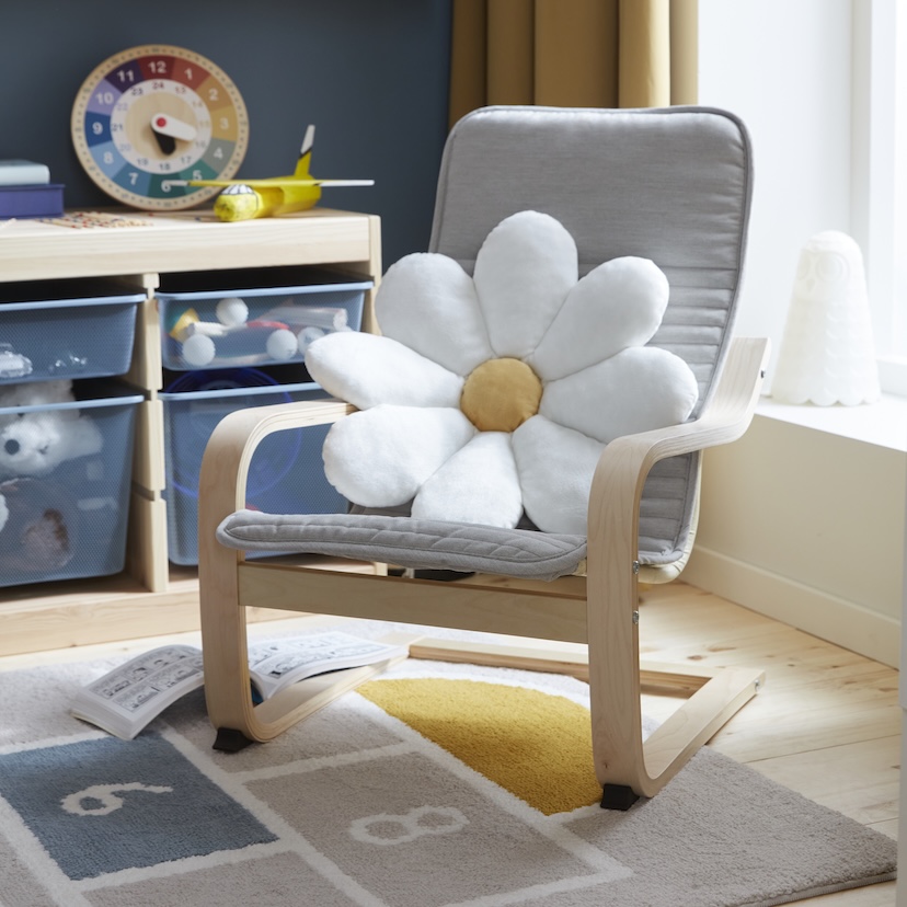 After a long day, kids need a soft spot to relax. A POÄNG children’s armchair does the trick—it’s low, cushioned, and perfectly sized for curling up with a picture book or just zoning out. Top it off with the cheerful STÄPPSVARV rug to keep playtime grounded (literally) and offer a screen-free outlet for energy.