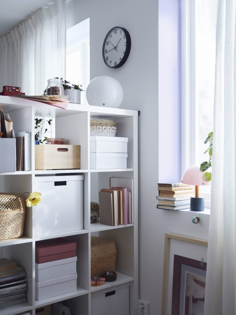 A teenager’s room should reflect their evolving style. The KALLAX shelving units are flexible and easy to use at home. They offer open storage that doubles as a design element, and can be personalized with boxes and inserts — or paired with an underframe for an airy look — all without cramping their style.