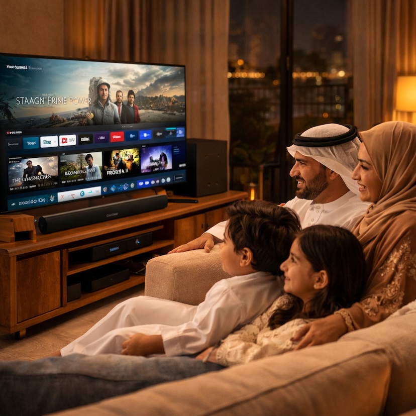 Family time matters here too. Movie nights and shared gaming sessions are not just entertainment — they are some of the more reliable ways families actually spend time together, in the same room, doing the same thing. Samsung and Wansa smart TVs anchor the living room as a communal space, while Sony sound systems and streaming devices from Amazon, Xiaomi, and OSN pull the whole setup together into something that feels less like a home cinema and more like a living room that simply works very well. The difference is in the detail.