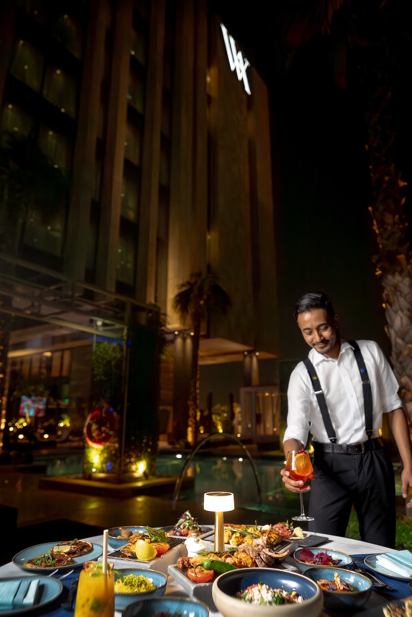 Oxio presents a new Levantine-inspired menu, inviting you to enjoy vibrant flavors in an open-air setting under the stars. Complementing the menu is the Grill & Drink Night, a poolside experience every Thursday and Friday. Guests can savor expertly grilled dishes paired with refreshing drinks, while a live DJ sets the perfect backdrop for relaxed sophistication.