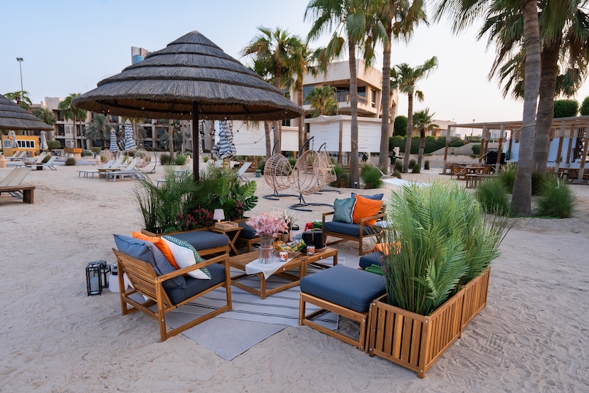 For the locally renowned Marina Hotel Kashta, IKEA for Business created a cozy seating area with six comfortable chairs, a spacious coffee table for snacks and drinks, and an inviting mix of plants, rugs, and accessories to set the perfect mood. When the weather turns cooler, soft blankets tucked neatly in a basket keep guests warm as they enjoy the experience, and the entire setup can easily be scaled up or down to suit any space.
