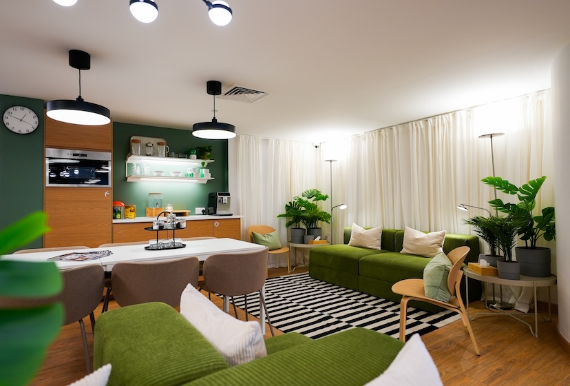 In another residential project, IKEA for Business created a calm, modern living space tailored for newlyweds or individuals seeking a peaceful home environment in a 62 m² one-bedroom apartment. The team designed the apartment using soothing neutrals with soft touches of green and beige, striking a balance between warmth, functionality, and timeless elegance. Every element, from layout planning to furniture selection, was intentionally curated to maximize comfort and usability, showing how IKEA for Business can transform even compact spaces into serene, fully functional retreats ideal for everyday living.