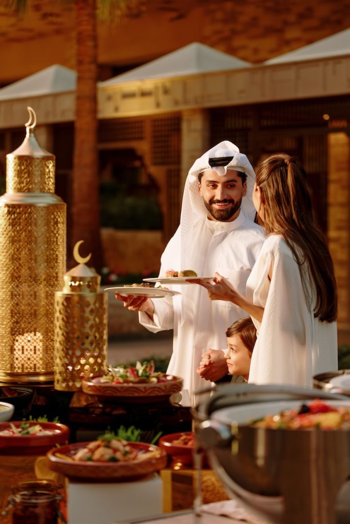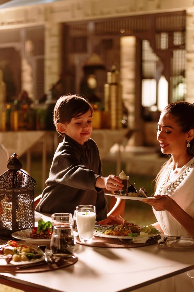 As the sun sets, soft breezes move through the garden and lantern light begins to glow across the tented space. The atmosphere feels both festive and peaceful, blending outdoor charm with the refined comfort that defines Jumeirah Hospitality. It is a setting that feels made for lingering conversations, shared prayers, and meaningful moments.