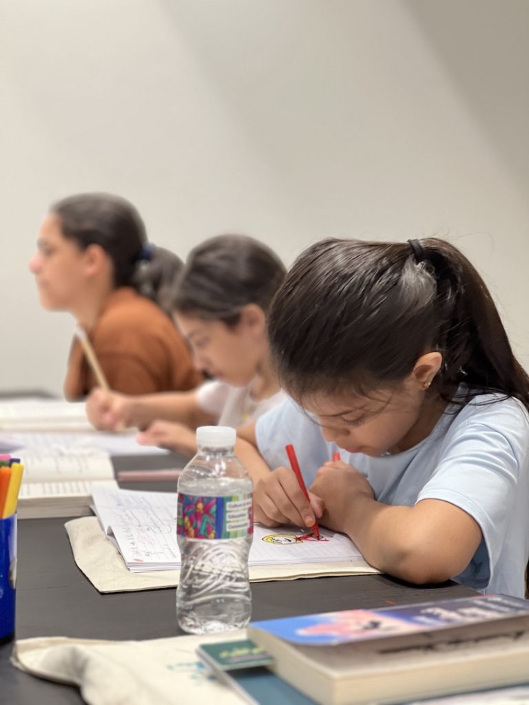 To encourage deeper engagement, each child received a reading journal where they could summarize chapters, answer questions, and jot down personal reflections. In the very first meeting, they even designed their own Ex Libris stamps, personal bookplates that they would later use to mark their copies of Kiki’s Delivery Service. Thanks to Programme Coordinator Farah Omrani, the children saw their designs turned into real stamps, a moment that highlighted how books can become treasures, uniquely theirs.