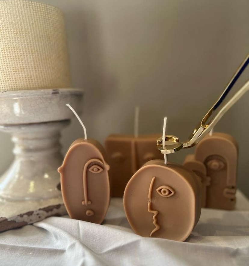 One of her most meaningful creations is a candle called A Party of Four—a sculpted piece featuring four abstract faces. “It reminds me of my mother,” she says, her voice softening. “She used to paint faces just like these. When I found the mold, I knew I had to make it. It’s a quiet tribute to her. And what’s beautiful is that it’s one of my bestsellers. I think people feel the emotion behind it, even if they don’t know the story.”