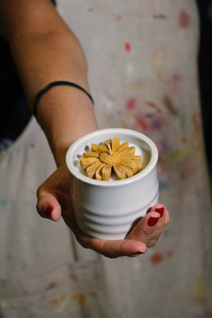 And where is it all going? “I’d love to eventually open a studio space where people can come, create, or just chill. A place where you want to stop by to pick up a gift, make a candle, or hang out. That’s my dream,” she says, beaming.